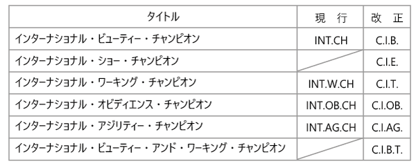 FCIインターナショナルチャンピオンタイトル取得に関する改正