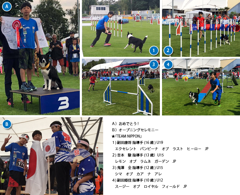 2019年7月12日~14日、スイス連邦・クロイツリンゲンで開催されたアジリティー・ジュニア・ヨーロピアン・オープン 2019において、個人競技ラージクラスU15で、吉本 駿指導手(13歳)/レモン オブ ラムネ ガーデン JP(犬種:ボーダー・コリー)ペアが世界から参加した15カ国40ペア中、堂々の総合3位に入賞しました!