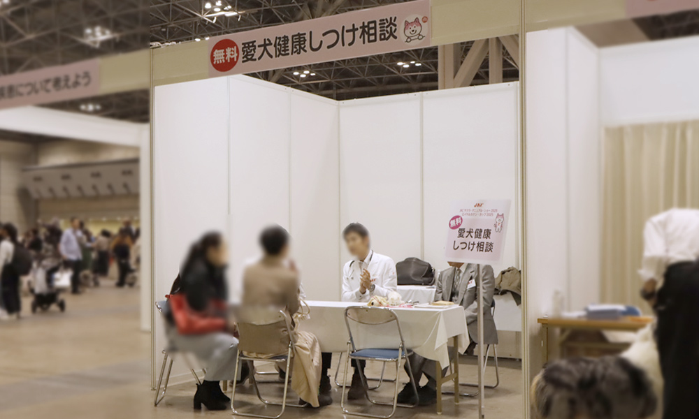 こちらのコーナーは、日頃聞いてみたいと思っていた健康相談、しつけの相談、愛犬の飼育に関する相談を受け付けています。獣医師、訓練士の先生方が2日間常駐しております。愛犬連れでのご相談もOK。お気軽にお立ち寄りください。