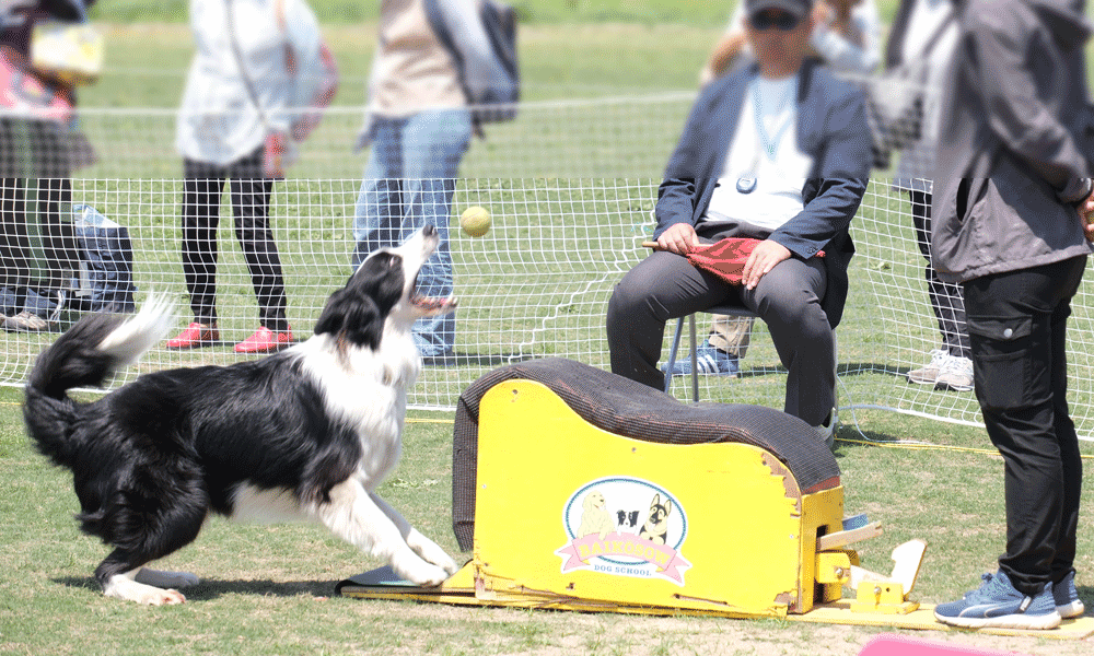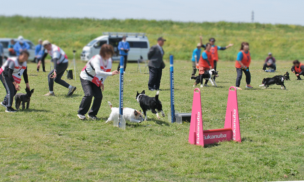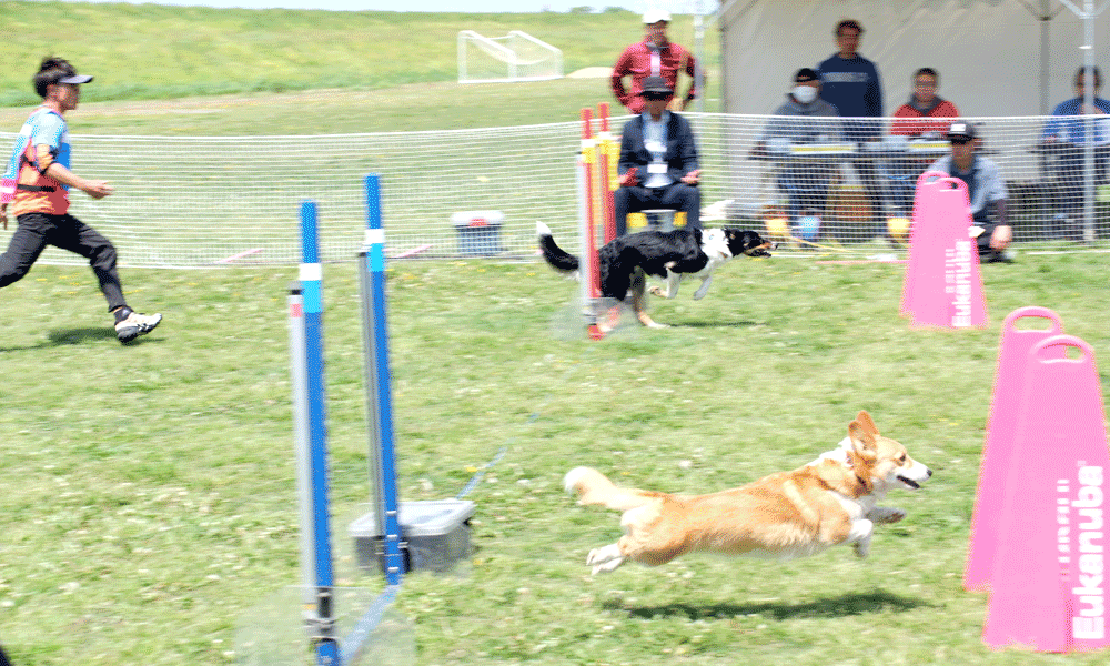 後ろから大声で愛犬に指示を飛ばす指導手たち、大歓声の中、確実にボールを咥えてハードルを飛び、より速いタイムで戻ってきた方が勝ちとなります。同時に2頭の犬がスタートラインで入れ代わる神業は必見です。帰ってきた犬たちは、ほめられて得意げで嬉しそうです。