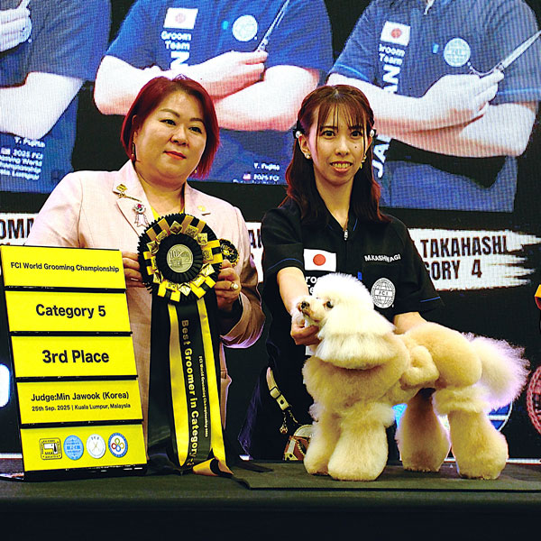 2025年9月25日(木曜日)にマレーシアのクアラルンプールにて、第3回目となる「2025FCIグルーミング・ワールド・チャンピオンシップ」が開催され、参加国7カ国(オーストラリア・中国・日本・韓国・マレーシア・フィリピン・台湾)中、日本は、団体で第2位となりました。