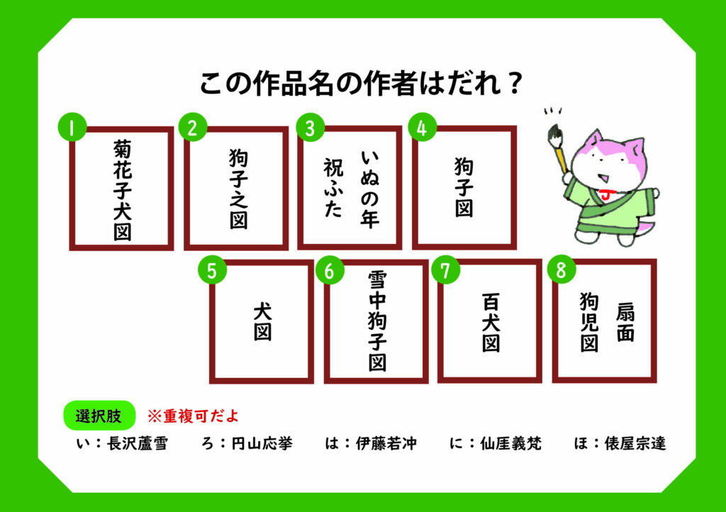とくに円山応挙と長沢蘆雪は子犬の絵をたくさん描いた人だから、気になったらリサーチしてみてね。