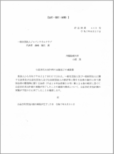 これにより、一般社団法人への移行に関する全ての手続きが完了いたしましたことをご報告申し上げます。