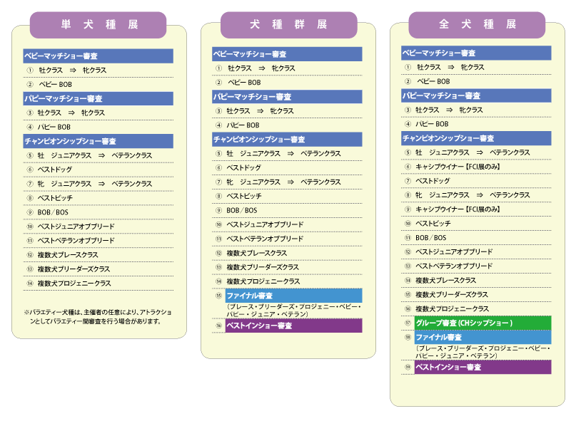 ※上記の手続き中、審査を止めることはいたしません。当該犬種の審査開始前に確認し、手続きを済ませてください。