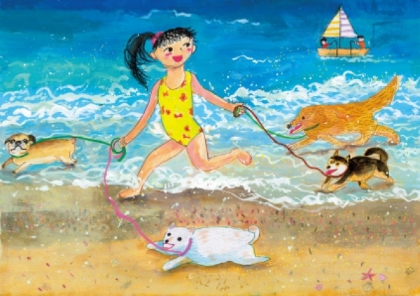 今回49回目を迎えた「夏休み犬の絵コンクール」には、一般の方々のほか、全国各地の小学校・絵画教室などからたくさんのご応募をいただきました。応募総数は、合計9,994点に達しました。誠にありがとうございました。厳選なる審査の結果、86点の入賞作品が選ばれました。ここに上位入賞作品をご紹介します。